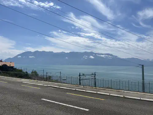 The route was enjoyable and we were able to make good time, eventually finding ourselves at the edge of Lake Geneva at Villenueve ; a huge expanse of water which looks like an inland ocean!