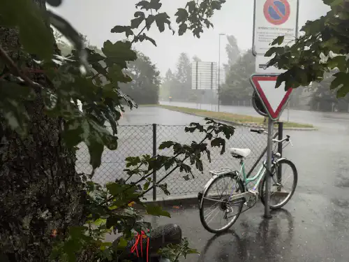 Everything was drenched. Luckily our hotel for the night was 5miles away and we pedalled damply to the outskirts of Lausanne, finding ourselves in a business park/industrial estate. Luckily it’s got a Lidl and a McDonald’s so we are going to be fine!
