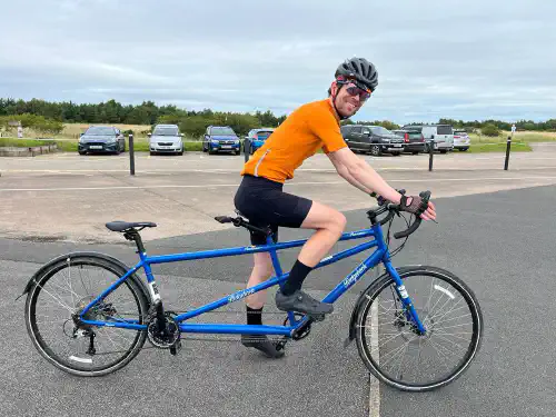 The bike was a blue Ridgeback with dropped bars, and that’s the extent of my tandem knowledge.